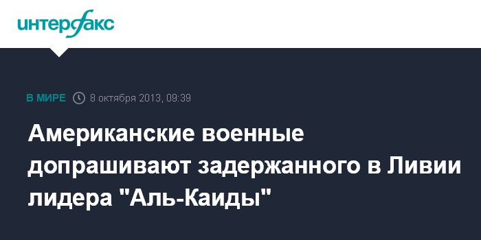Каир. 8 октября. INTERFAX.RU - Военнослужащие США проводят допрос удерживаемого ими лидера "Аль-Каиды" Абу Анаса аль-Либи, сообщил журналистам высокопоставленный американский чиновник.