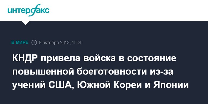 Пекин. 8 октября. INTERFAX.RU - Власти Северной Кореи предупредили США, что произойдет ужасная катастрофа в случае проведения совместных маневров американских, южнокорейских и японских военнослужащих, говорится в сообщении, распространенном по каналам северокорейского агентства ЦТАК.