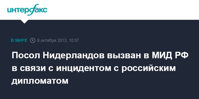 Посол Нидерландов вызван в МИД РФ в связи с инцидентом с российским дипломатом