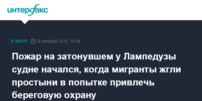 Пожар на затонувшем у Лампедузы судне начался, когда мигранты жгли простыни в попытке привлечь береговую охрану