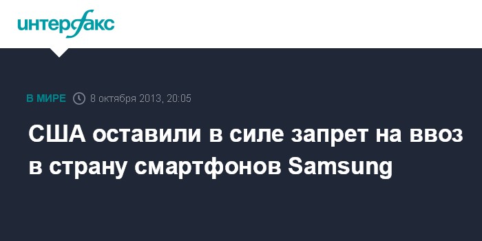 Вашингтон. 8 октября. INTERFAX.RU - Правительство США не стало отменять запрет на ввоз ряда моделей смартфонов производства Samsung Electronics Co. из-за нарушения патентов Apple Inc., сообщает агентство Bloomberg.