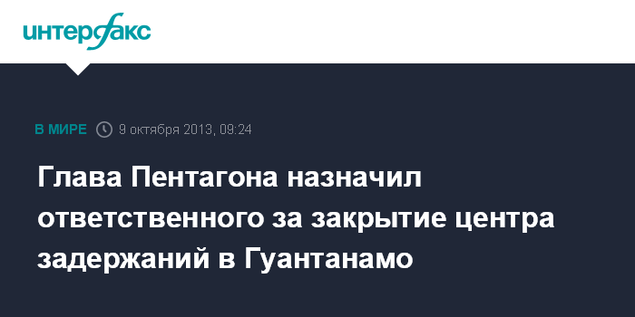 Вашингтон. 9 октября. INTERFAX.RU - Министр обороны США Чак Хейгел назначил Пола Льюиса спецпосланником, ответственным за закрытие центра задержаний на военной базе США в Гуантанамо (Куба), сообщает во вторник американская газета Washington Times.