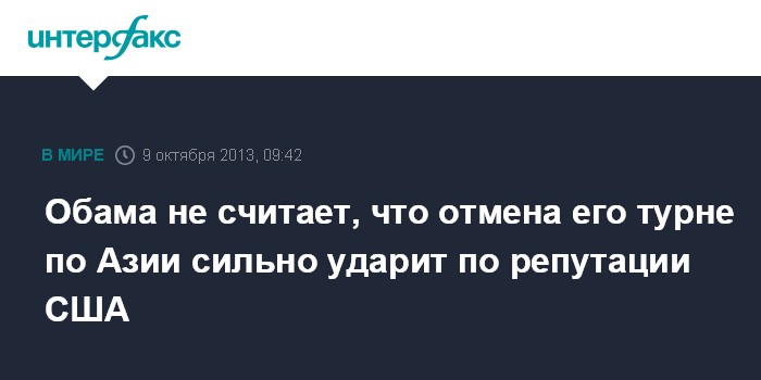 Обама не считает, что отмена его турне по Азии сильно ударит по репутации США