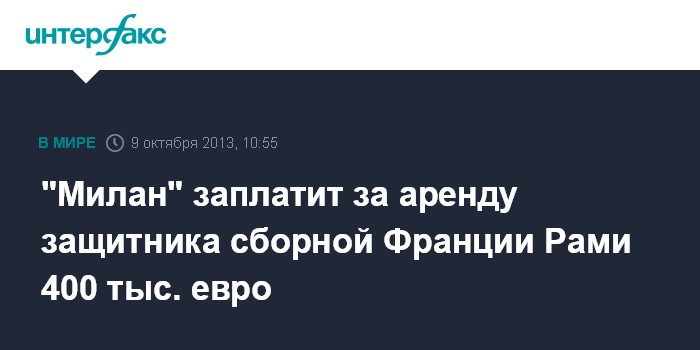 "Милан" заплатит за аренду защитника сборной Франции Рами 400 тыс. евро
