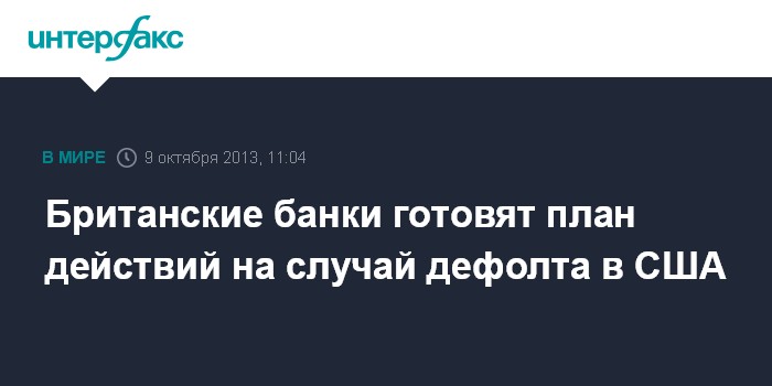 Лондон. 9 октября. INTERFAX.RU - Ряд британских банков ведут переговоры с регуляторами и задумываются о том, что делать, если США не смогут поднять потолок госдолга, сообщает The Wall Street Journal.