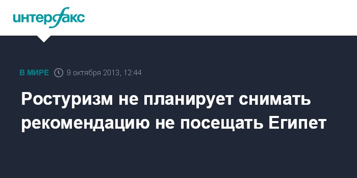 Санкт-Петербург. 9 октября. INTERFAX.RU - Федеральное агентство по туризму РФ по-прежнему придерживается своих рекомендаций для российских граждан относительно запрета туристических поездок в Египет в связи с нестабильной ситуацией в стране.