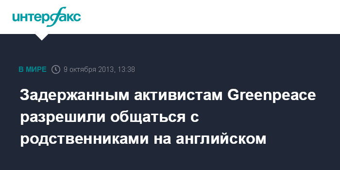 Задержанным активистам Greenpeace разрешили общаться с родственниками на английском