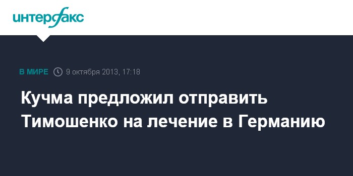 Киев. 9 октября. INTERFAX.RU - Бывший президент Украины Леонид Кучма считает наиболее простым решением вопроса с осужденной экс-премьером Юлией Тимошенко ее лечение за рубежом.