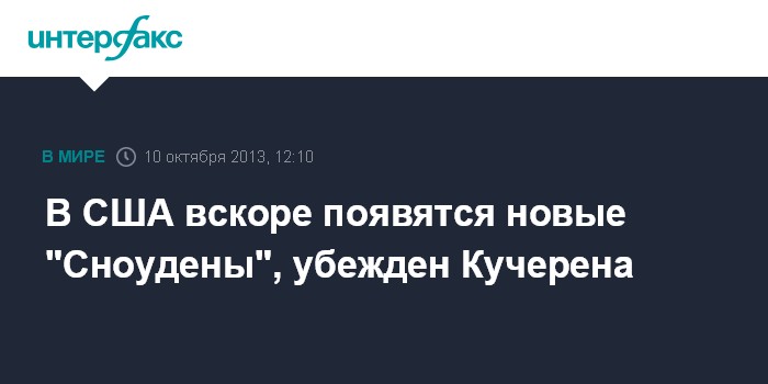 Москва. 10 октября. INTERFAX.RU - Адвокат Анатолий Кучерена не исключает появления в ближайшей перспективе в США новых разоблачителей, воодушевленных примером Эдварда Сноудена.