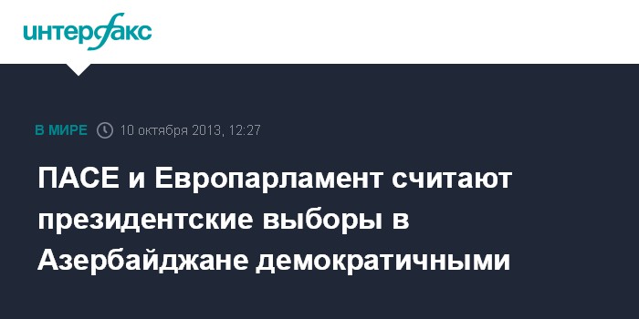 Баку.10 октября. INTERFAX.RU - Миссии наблюдателей Парламентской ассамблеи Совета Европы (ПАСЕ) и Европарламента поздравили азербайджанский народ с успешным завершением президентских выборов.