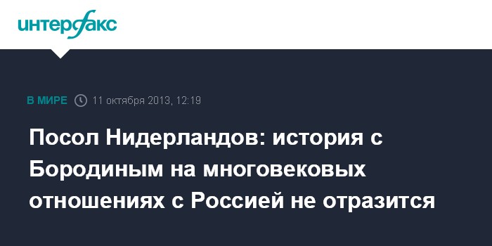 Посол Нидерландов: история с Бородиным на многовековых отношениях с Россией не отразится