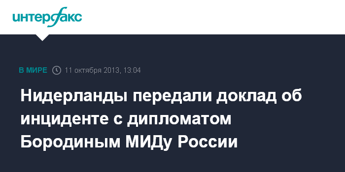 Нидерланды передали доклад об инциденте с дипломатом Бородиным МИДу России