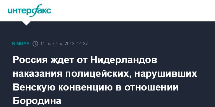 Россия ждет от Нидерландов наказания полицейских, нарушивших Венскую конвенцию в отношении Бородина
