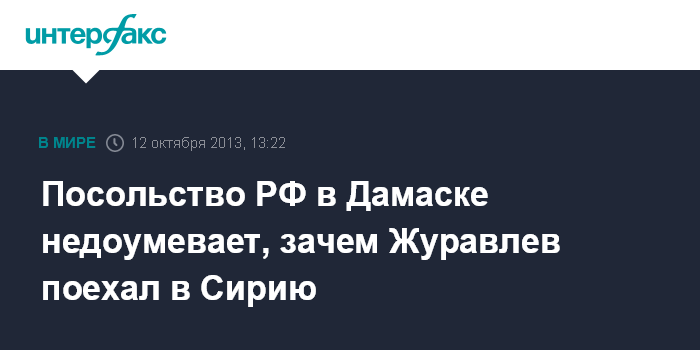 Посольство РФ в Дамаске недоумевает, зачем Журавлев поехал в Сирию