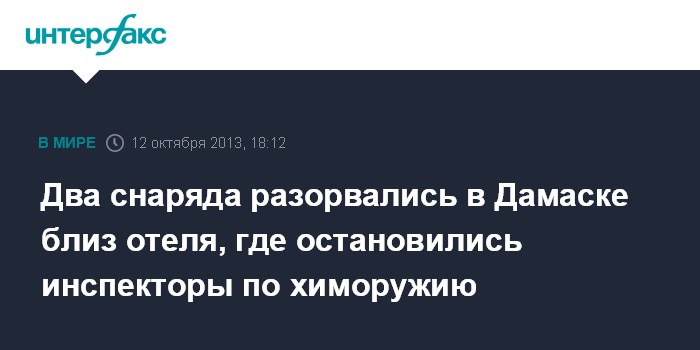 Два снаряда разорвались в Дамаске близ отеля, где остановились инспекторы по химоружию