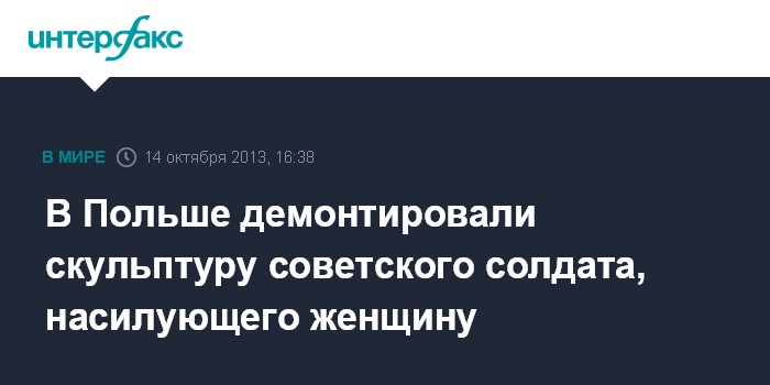 В Польше демонтировали скульптуру советского солдата, насилующего женщину