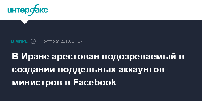 Дубай. 14 октября. INTERFAX.RU - В Иране задержали мужчину, подозреваемого в создании поддельных аккаунтов нескольких иранских министров в социальной сети Facebook, сообщили в понедельник в министерстве юстиции страны.