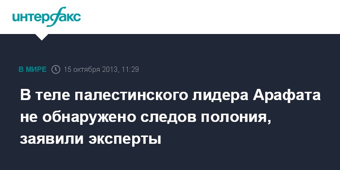 В теле палестинского лидера Арафата не обнаружено следов полония, заявили эксперты