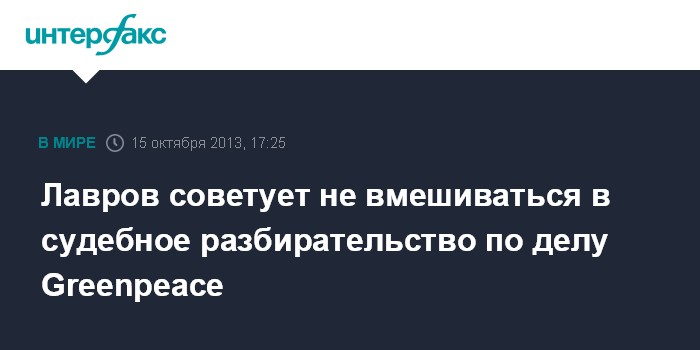 Брюссель. 15 октября. INTERFAX.RU - Глава МИД России Сергей Лавров призвал воздержаться от вмешательства в судебный процесс над активистами Greenpeace, обвиняемыми в России в пиратстве.