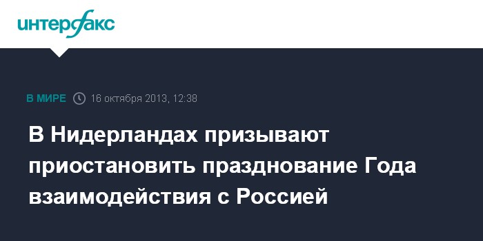 В Нидерландах призывают приостановить празднование Года взаимодействия с Россией