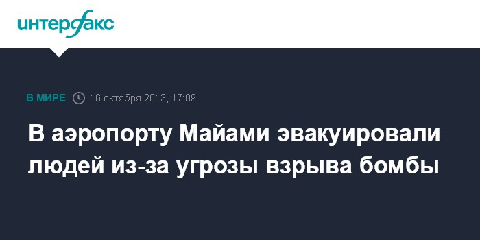 Вашингтон. 16 октября. INTERFAX.RU - В одном из терминалов международного аэропорта Майами были эвакуированы люди и отогнаны в безопасное место самолеты из-за сообщения о подозрительной сумке, передает в среду местный портал Miami Herald.