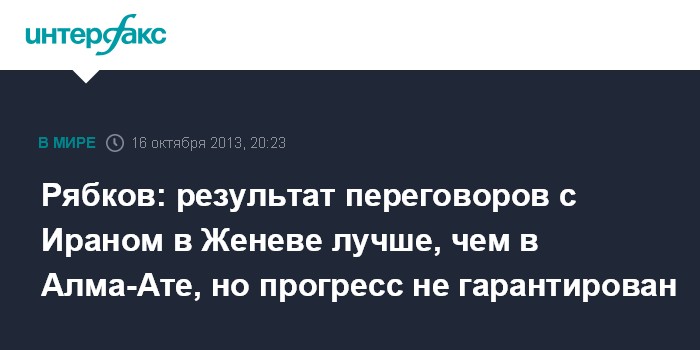Женева.16 октября. INTERFAX.RU - Замглавы МИД России Сергей Рябков оценил результаты нынешнего раунда переговоров "шестерки" и Ирана как более продвинутые, чем итоги предыдущего раунда в Алма-Ате, но не гарантирующие дальнейшего прогресса.