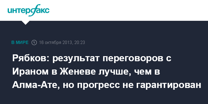Рябков: результат переговоров с Ираном в Женеве лучше, чем в Алма-Ате, но прогресс не гарантирован
