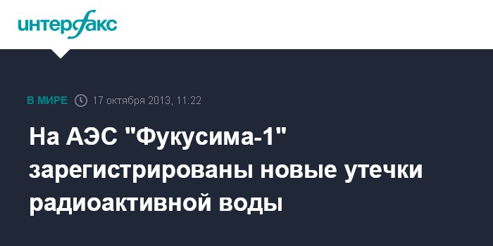 Токио. 17 октября. INTERFAX.RU - Компания-оператор аварийной японской АЭС "Фукусима-1" ТЕПКО (TEPCO) сообщила об утечке радиоактивной воды из одного из резервуаров станции, передает в четверг японский телеканал NHK.