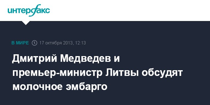 Вильнюс. 17 октября. INTERFAX.RU - Литовский премьер Альгирдас Буткявичюс (Algirdas Butkevicius) заявил, что в ближайшие недели состоится его телефонный разговор с премьер-министром России Дмитрием Медведевым, в котором главы правительств обсудят ситуацию с введением Россией эмбарго на литовскую молочную продукцию.