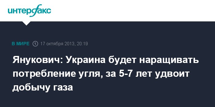 Янукович: Украина будет наращивать потребление угля, за 5-7 лет удвоит добычу газа