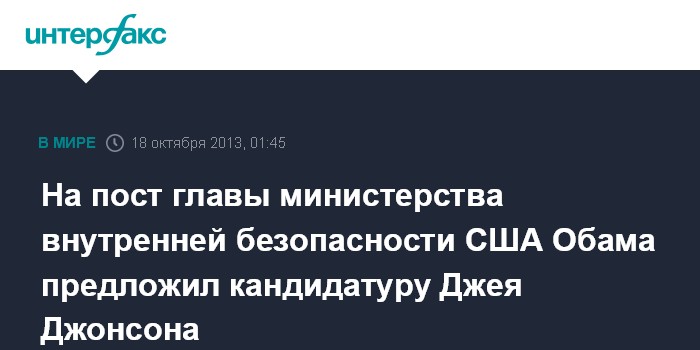 На пост главы министерства внутренней безопасности США Обама предложил кандидатуру Джея Джонсона