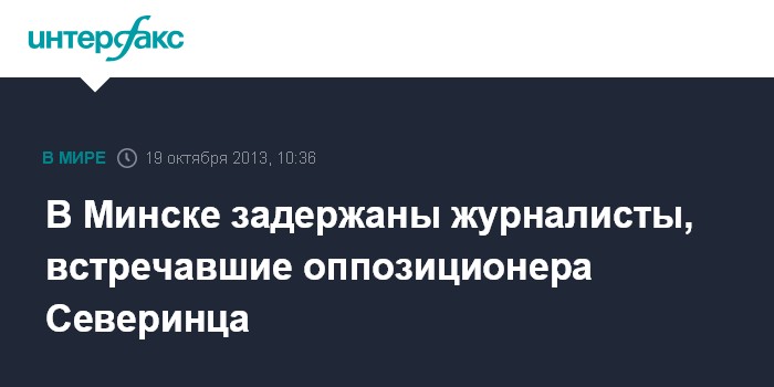 Минск. 19 октября. INTERFAX.RU - Сотрудники милиции задержали на железнодорожном вокзале в Минске шесть журналистов, которые встречали освободившегося из мест лишения свободы сопредседателя не зарегистрированной в Белоруссии партии "Белорусская христианская демократия" Павла Северинца, сообщили агентству "Интерфакс-Запад" в субботу в Белорусской ассоциации журналистов (БАЖ). "По предварительной информации, сотрудники милиции задержали шесть журналистов, которые пришли встречать П.Севиринца, освободившегося сегодня утром из мест лишения свободы", - отметили в БАЖ.