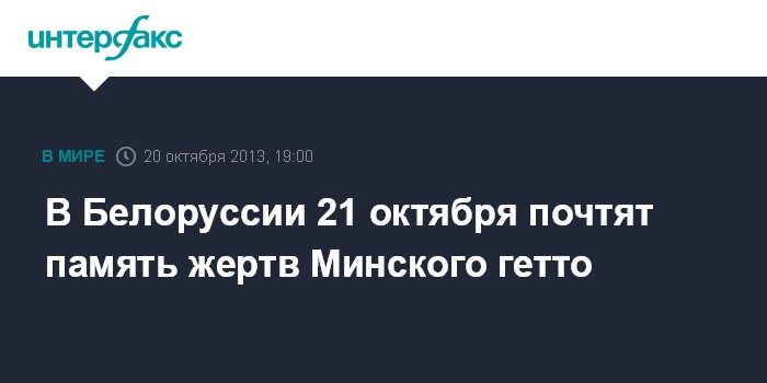 В Белоруссии 21 октября почтят память жертв Минского гетто