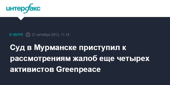 Суд в Мурманске приступил к рассмотрениям жалоб еще четырех активистов Greenpeace