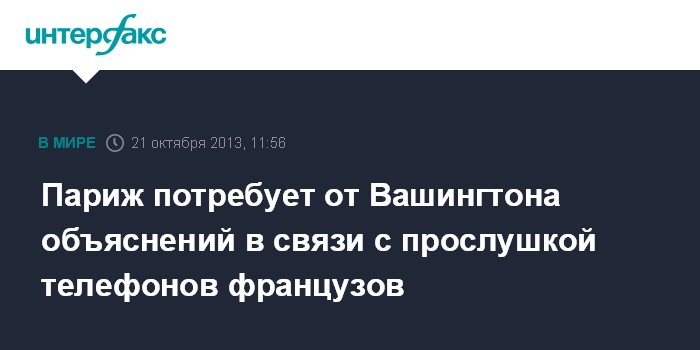 Париж. 21 октября. INTERFAX.RU - Глава МВД Франции Манюэль Вальс в понедельник заявил о намерении потребовать у властей США объяснений после обнародования данных о прослушке американскими спецслужбами телефонных разговоров французских граждан.