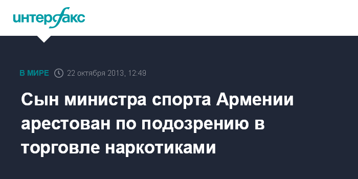 Сын министра спорта Армении арестован по подозрению в торговле наркотиками