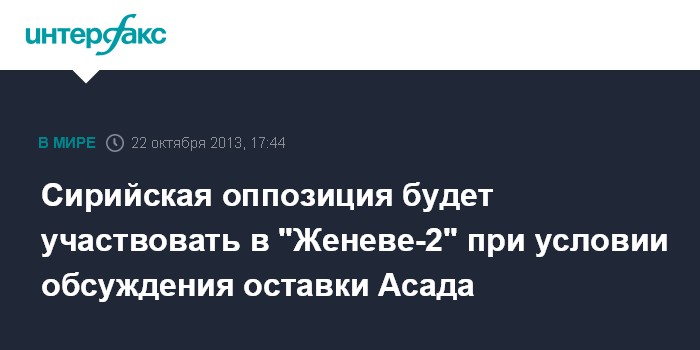Сирийская оппозиция будет участвовать в "Женеве-2" при условии обсуждения оставки Асада