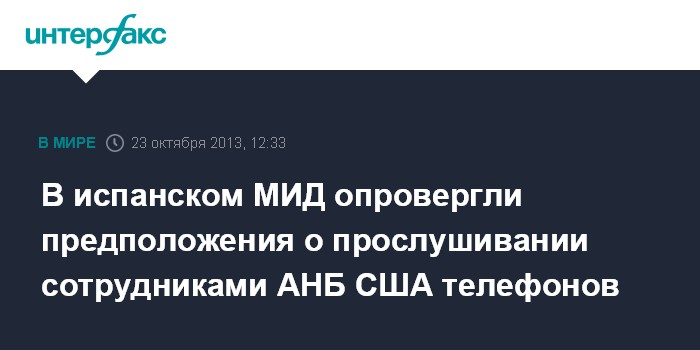 Накануне El Pais сообщила, что испанские спецслужбы подозревают Агентство национальной безопасности (АНБ) США в прослушке миллионов телефонных разговоров, а также перехвате текстовых и электронных сообщений жителей Испании.