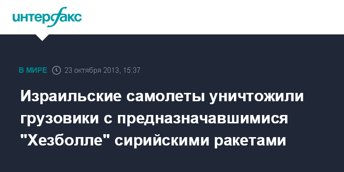 Израильские самолеты уничтожили грузовики с предназначавшимися "Хезболле" сирийскими ракетами