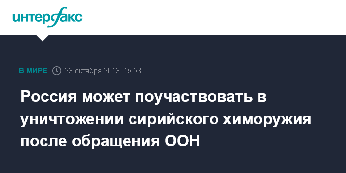Россия может поучаствовать в уничтожении сирийского химоружия после обращения ООН