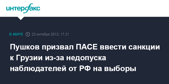 Пушков призвал ПАСЕ ввести санкции к Грузии из-за недопуска наблюдателей от РФ на выборы