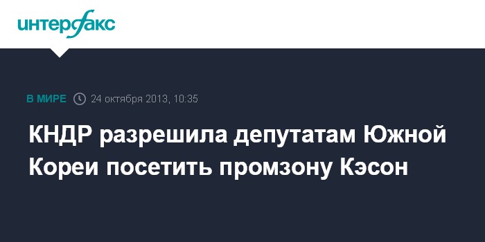 Токио. 24 октября. INTERFAX.RU - Южнокорейские депутаты смогут посетить на будущей неделе совместную с КНДР промышленную зону Кэсон, сообщает в четверг агентство EFE.