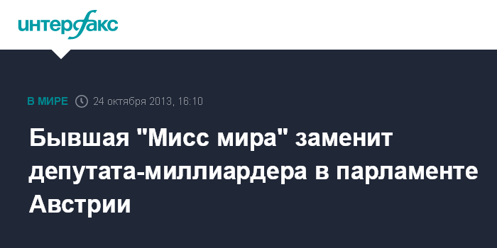 Бывшая "Мисс мира" заменит депутата-миллиардера в парламенте Австрии