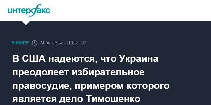 В США надеются, что Украина преодолеет избирательное правосудие, примером которого является дело Тимошенко