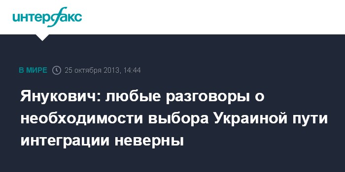 Минск. 25 октября. INTERFAX.RU - Президент Украины Виктор Янукович считает, что любые разговоры о необходимости выбора страны между направлениями интеграции неверны.