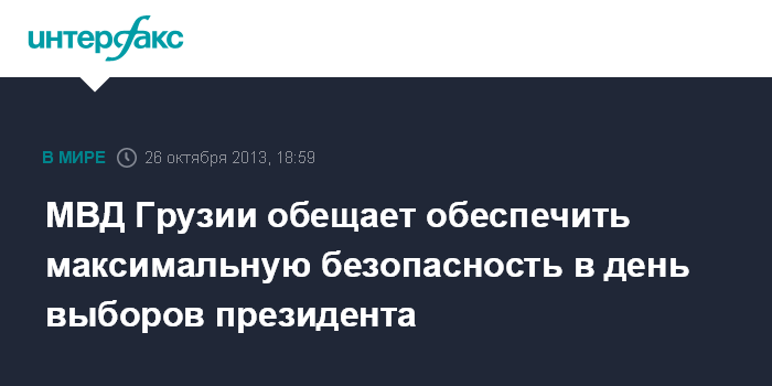 Тбилиси. 26 октября. INTERFAX.RU - МВД Грузии в очередной раз заявляет о готовности ведомства обеспечить спокойную обстановку в стране в день президентских выборов, которые пройдут 27 октября.