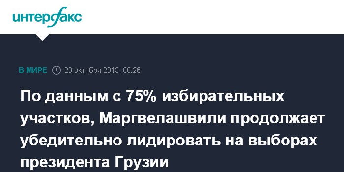 По данным с 75% избирательных участков, Маргвелашвили продолжает убедительно лидировать на выборах президента Грузии