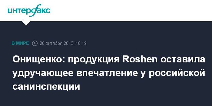 Москва. 28 октября. INTERFAX.RU - Проверка украинской кондитерской фабрики Roshen не удовлетворила российских специалистов, заявил бывший руководитель Роспотребнадзора, помощник премьер-министра РФ Геннадий Онищенко.