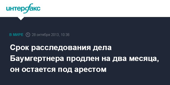 Срок расследования дела Баумгертнера продлен на два месяца, он остается под арестом