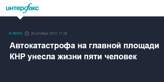 Пекин. 28 октября. INTERFAX.RU - Пять человек погибли в понедельник на площади Тяньаньмэнь в Пекине в результате ДТП и последовавшего за ним возгорания, сообщают государственные китайские СМИ.